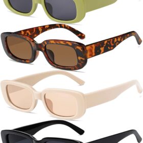 4 Pieces Retro Vintage Sunglasses Small Square Rectangle 90s Glasses Trendy Y2K for Women Aesthetic Accessories