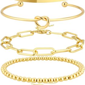 14K Gold Plated Bangle Cuff Bracelet Set for Women Bracelet Stack Adjustable Tennis/Beaded/Paperclip/Cuban Link Chain Bracelets Jewelry Gift for Women