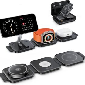 3 in 1 Charging Station for iPhone 16/15/14/13/12 Series, Travel Charger for Multiple Devices for AirPods 4/3/2/Pro,Wireless Charger Magnetic Charging for Apple Watch S10 Series(Black)