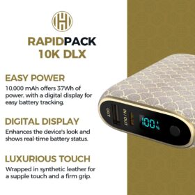 Halo RapidPack 10K DLX Power Bank | USB & USB-C Fast Charging for Multiple Devices, Smart Phones & Tablets, Synthetic Leather Wrapped, Portable Battery Charger, TSA Air Travel Approved Champagne