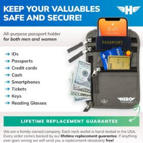 HERO Neck Wallet RFID Blocking Passport Holder Easy to Conceal Travel Pouch