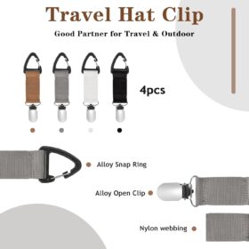 Mabor 4Pcs Travel Hat Clip Elastic Hat Holder for Purse Hands-Free Bag Accessory for Traveling Bags Backpacks Purses Luggage Outdoor Travel Accessory
