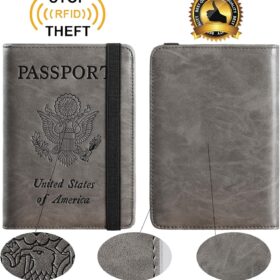 Passport Holder Cover Wallet Travel Essentials RFID Blocking Leather Card Case International Travel Must Haves Travel Accessories for Women Men(101#Coffee Grey)