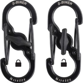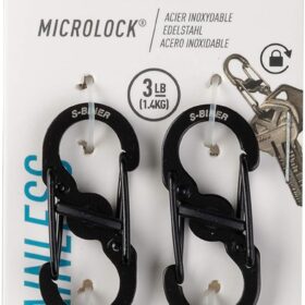 Nite Ize S-Biner MicroLock Stainless Steel – S-Biner with Locking Dual Sided Gates – Keep Keys Secure with Carabiner Key Holder – Black (2 Pack)