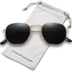 Polarized Sunglasses for Womens Men Trendy Square Hexagonal Flat Mirrored Sun Glasses UV Protection