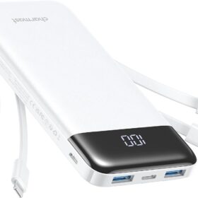 Portable Charger with Built in Cables, Portable Charger with Cords Wires Slim 10000mAh Travel Battery Pack 6 Outputs 3 Inputs 3A Fast Charging Power Bank for Samsung Google Pixel LG Moto iPhone iPad
