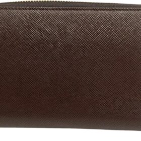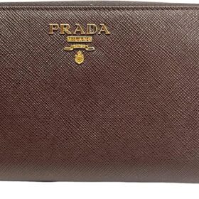 Prada Bruciato Brown Saffiano Leather Zip Around Continental Wallet