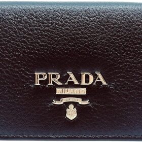 Prada Black Vitello Grain Soft Calf Leather Credit Card Case Wallet 1MC122