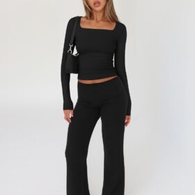 Trendy Queen Womens Long Sleeve Shirts Going Out Basic Crop Tops Fashion Y2k Workout Clothes Square Neck Fall Outfits