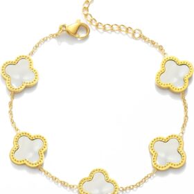Trendy Link Bracelets for Women 18K Gold Plated Clover Adjustable Lucky Bracelet Mother’s Day Gift
