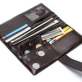 Zipper Men Long Wallet Vintage Cow Leather Male Clutch Purse Phone Card Holder 100% Genuine Leather Mens Wallets (Color : A, Size : 19 * 9cm)