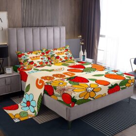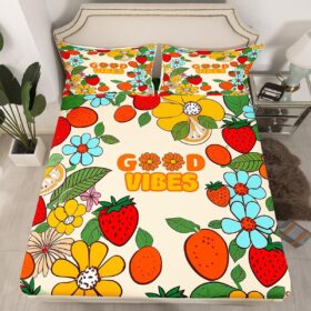 1960’s 1970’s Sheet Set for Adult,Disco Hippie Indie Flower Bed Sheets Full Size,Colorful Summer Floral Bedding Set,Hawaii Groovy Garden Floral Fitted Sheet + Top Sheet + 2 Pillow Shams Bedroom Decor