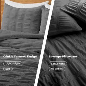 3-Piece Seersucker Bubble Ruffled Chic Textured Comforter Set, Lightweight Bedding Set Gray – Twin