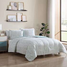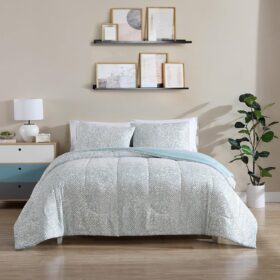 1888 Mills Twin Comforter Set, 2 Pieces Reversible (Solid and Geo Print), All-Season Lightweight and Soft Bedding with Easy Care, 1 Comforter (86x66) and 1 Pillow Sham (20x36)