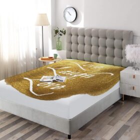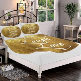 Decorative Bedding Sheet Set Twin XL Size, Live Laugh Love Deep Pockets Fitted Sheet & 2 Pillow Sham Set, Inspirational Words Life Message on Gold Colored Spot Modern Print 3pc Bed Sheets Set