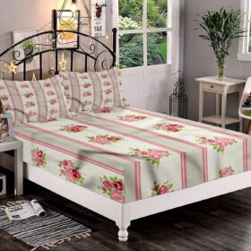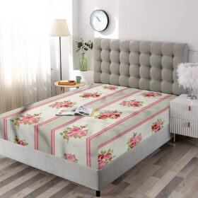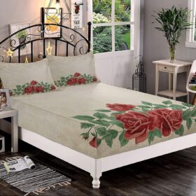 Decorative Bedding Sheet Set Twin XL Size, Shabby Chic Deep Pockets Fitted Sheet & 2 Pillow Sham Set, Corsage of English Rose Print Microfiber 3pc Bed Sheets Set, for Mattress (Deep: 5