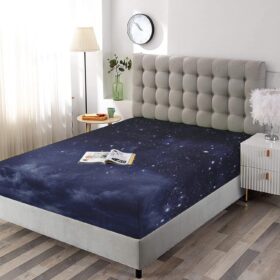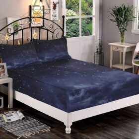 Decorative Bedding Sheet Set Twin XL Size, Night Deep Pockets Fitted Sheet & 2 Pillow Sham Set, Ethereal View of The Dark Sky Fantasy Cosmic Universe Print Microfiber 3pc Bed Sheets Set,for Mattress