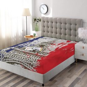 Decorative Bedding Sheet Set Twin XL Size, Paris Deep Pockets Fitted Sheet & 2 Pillow Sham Set(No Flat Sheet), Grunge Style French Flag Print Microfiber 3pc Bed Sheets Set, for Women & Men Bedding