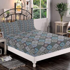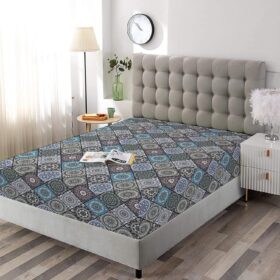 Decorative Bedding Sheet Set Twin XL Size, Moroccan Deep Pockets Fitted Sheet & 2 Pillow Sham Set, Detailed Flower Designs with Checkered Pattern Print Microfiber 3pc Bed Sheets Set,for Mattress