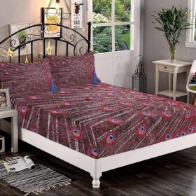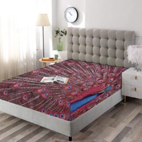 Decorative Bedding Sheet Set Twin XL Size, Peacock Decor Deep Pockets Fitted Sheet & 2 Pillow Sham Set, Beautiful Male Peacock Displays His Plumage Print Microfiber 3pc Bed Sheets Set