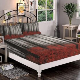 Decorative Bedding Sheet Set Twin XL Size, Mystic Forest Deep Pockets Fitted Sheet & 2 Pillow Sham Set, Grass Modern Art Flower Rainy Foggy Scene Print Microfiber 3pc Bed Sheets Set