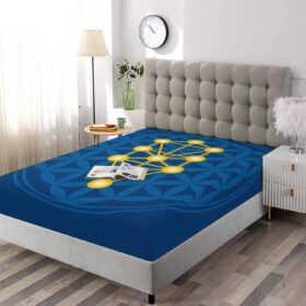 Decorative Fitted Sheet Set Twin Size, Egyptian Deep Pockets Fitted Sheet & 2 Pillow Sham Set, Spiritual Symbol over Flower of Life Ancient Abstract Printed Microfiber Bedding 3pc Set,for Mattress
