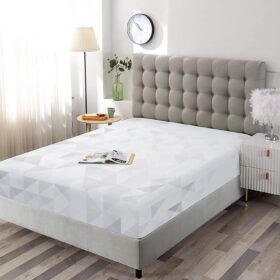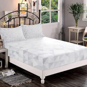 Decorative Fitted Sheet Set Twin Size, Grey and White Deep Pockets Fitted Sheet & 2 Pillow Sham Set(No Flat Sheet), Geometric Poly Artsy Triangles Abstract Printed Microfiber Bedding 3pc Set