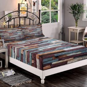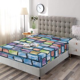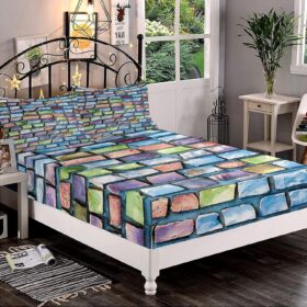 Decorative Fitted Sheet Set Twin Size, Geometric Deep Pockets Fitted Sheet & 2 Pillow Sham Set(No Flat Sheet), Colorful Mosaic Textured Sketchy Brick Wall Modern Printed Microfiber Bedding 3pc Set