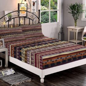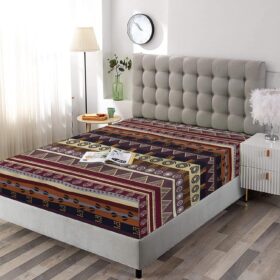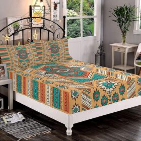 Decorative Bedding Sheet Set Twin XL Size, Tribal Deep Pockets Fitted Sheet & 2 Pillow Sham Set(No Flat Sheet), Tattoo Striped Print Microfiber 3pc Bed Sheets Set, for Women & Men Bedding