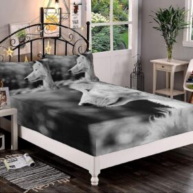 Decorative Bedding Sheet Set Twin XL Size, Wolf Deep Pockets Fitted Sheet & 2 Pillow Sham Set(No Flat Sheet), Animal Profile Portrait Print Microfiber 3pc Bed Sheets Set, for Mattress (Deep: 5