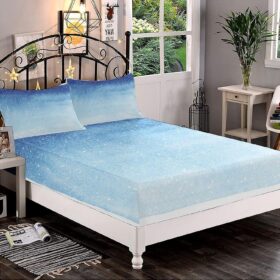 Decorative Bedding Sheet Set Twin XL Size, Winter Deep Pockets Fitted Sheet & 2 Pillow Sham Set, Christmas Falling Snow Splashes Stains of Watercolor Print Microfiber 3pc Bed Sheets Set,for Mattress