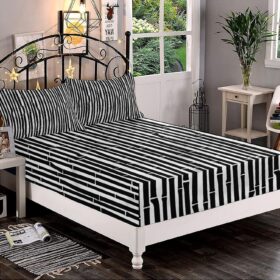 Decorative Bedding Sheet Set Twin XL Size, Tropical Deep Pockets Fitted Sheet & 2 Pillow Sham Set(No Flat Sheet), Black and White Stems Print Microfiber 3pc Bed Sheets Set, for Women & Men Bedding