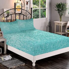 Decorative Bedding Sheet Set Twin XL Size, Turquoise Deep Pockets Fitted Sheet & 2 Pillow Sham Set, Small Dot Mosaic Tiles Shape Simple Classical Print Microfiber 3pc Bed Sheets Set,for Mattress