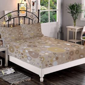 Decorative Bedding Sheet Set Twin XL Size, Tan Deep Pockets Fitted Sheet & 2 Pillow Sham Set(No Flat Sheet), Soft Colored Circles Dots Print Microfiber 3pc Bed Sheets Set, for Mattress (Deep: 5