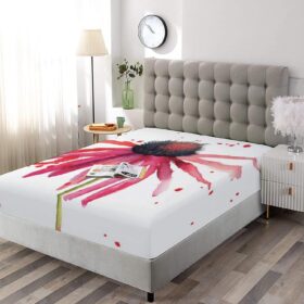 Decorative Fitted Sheet Set Twin Size, Watercolor Flower Deep Pockets Fitted Sheet & 2 Pillow Sham Set, Wild Orchid Family Flowerpot Plants Printed Microfiber Bedding 3pc Set, for Women & Men Bedding