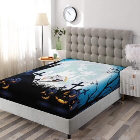 Decorative Fitted Sheet Set Twin XL Size, Halloween Deep Pockets Fitted Sheet & 2 Pillow Sham Set(No Flat Sheet), Spooky Scary Icons Old Harvest Figures in Dark Printed Microfiber Bedding 3pc Set