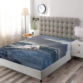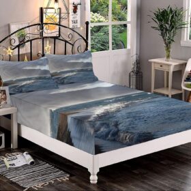 Decorative Fitted Sheet Set Twin Size, Mystic Deep Pockets Fitted Sheet & 2 Pillow Sham Set(No Flat Sheet), Wavy Ocean Coastline Beach Printed Microfiber Bedding 3pc Set, for Mattress (Deep: 5