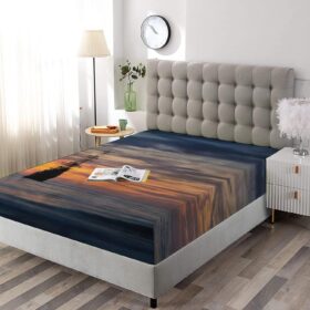 Decorative Fitted Sheet Set Twin Size, Nautical Deep Pockets Fitted Sheet & 2 Pillow Sham Set(No Flat Sheet), Ocean Sunset Dramatic Sky Printed Microfiber Bedding 3pc Set, for Mattress (Deep: 5