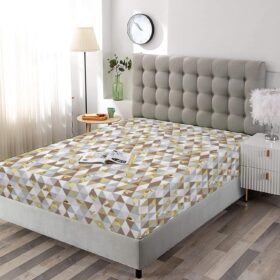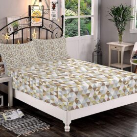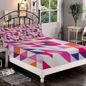 Decorative Fitted Sheet Set Twin XL Size, Geometric Fitted Sheet & 2 Pillow Sham Set(No Flat Sheet), Triangles Marble Soft Color Palette Mosaic Abstract Modern Printed Microfiber Bedding 3pc Set