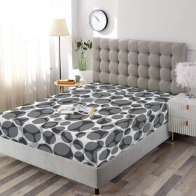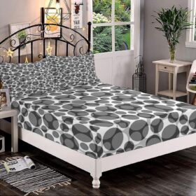 Decorative Fitted Sheet Set Twin XL Size, Grey Deep Pockets Fitted Sheet & 2 Pillow Sham Set(No Flat Sheet), Geometric Circles Round Contemporary Graphic Printed Microfiber Bedding 3pc Set