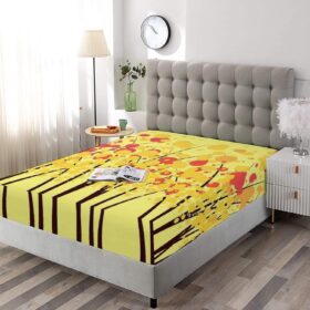 Decorative Fitted Sheet Set Twin Size, Yellow Deep Pockets Fitted Sheet & 2 Pillow Sham Set, Colorful Autumn Fall Forest with Dotted Flowers Printed Microfiber Bedding 3pc Set, for Women & Men Bedding
