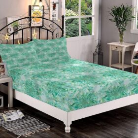 Decorative Fitted Sheet Set Twin Size, Turquoise Deep Pockets Fitted Sheet & 2 Pillow Sham Set(No Flat Sheet), Floral Pattern With Beryl Printed Microfiber Bedding 3pc Set, for Women & Men Bedding