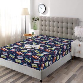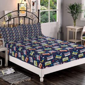 Decorative Fitted Sheet Set Twin Size, Music Deep Pockets Fitted Sheet & 2 Pillow Sham Set, Old Fashion Cassette Tapes with Stars Hearts Love Melody Printed Microfiber Bedding 3pc Set,for Mattress