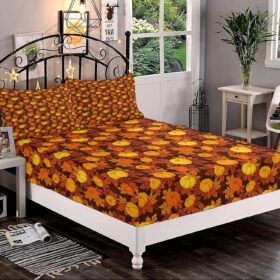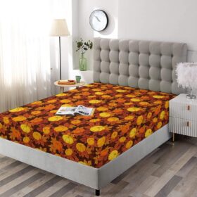 Decorative Fitted Sheet Set Twin Size, Harvest Deep Pockets Fitted Sheet & 2 Pillow Sham Set(No Flat Sheet), Fall Season Thanksgiving Autumn Maple Leaves Pumpkins Printed Microfiber Bedding 3pc Set
