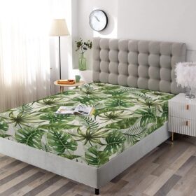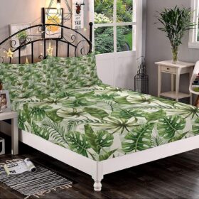 Decorative Fitted Sheet Set Twin Size, Tropical Deep Pockets Fitted Sheet & 2 Pillow Sham Set, Rainforest Island Jungle Foliage Green Leaves Retro Printed Microfiber Bedding 3pc Set,for Mattress