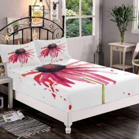 Decorative Fitted Sheet Set Twin Size, Watercolor Deep Pockets Fitted Sheet & 2 Pillow Sham Set, Summer Wildflower Blowing in Wind Printed Microfiber Bedding 3pc Set, for Mattress (Deep: 5