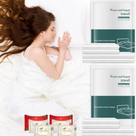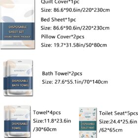 Disposable Travel Bedding Set, 1 Bed Sheet, 1 Quilt Cover, 2 Pillow Covers, 2 Bath Towels, 4 Face Towels, 5 Toilet Seat Covers, for Hotels, Trips, Hiking, Camping, Salon, SPA, Party