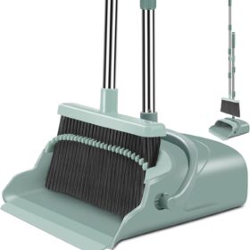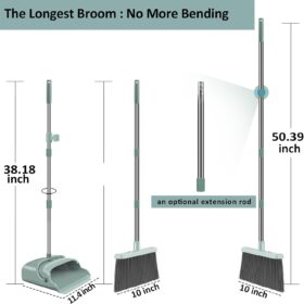 kelamayi Upgrade Broom and Dustpan Set, Large Size and with Long Handle, Upright,Ideal for Indoor Outdoor Garage Kitchen Room Office Lobby Use (Green)