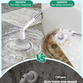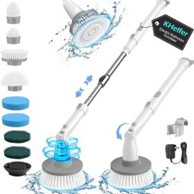 kHelfer Electric Spin Scrubber Kh8, 2024 Upgrade Cordless Shower Scrubber 8 Replacement Head, 1.5H Bathroom Scrubber Dual Speed, Shower Cleaning Brush with Extension Arm for Bathtub Tile Floor