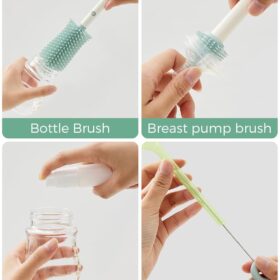 Momcozy Bottle Brush Set – Baby Bottle Cleaner Kit with Silicone Brush, Nipple Brush, Straw Brush, Soap Dispenser, Drying Rack – 7 in 1 Bottle Cleaning Tool for Home and Travel